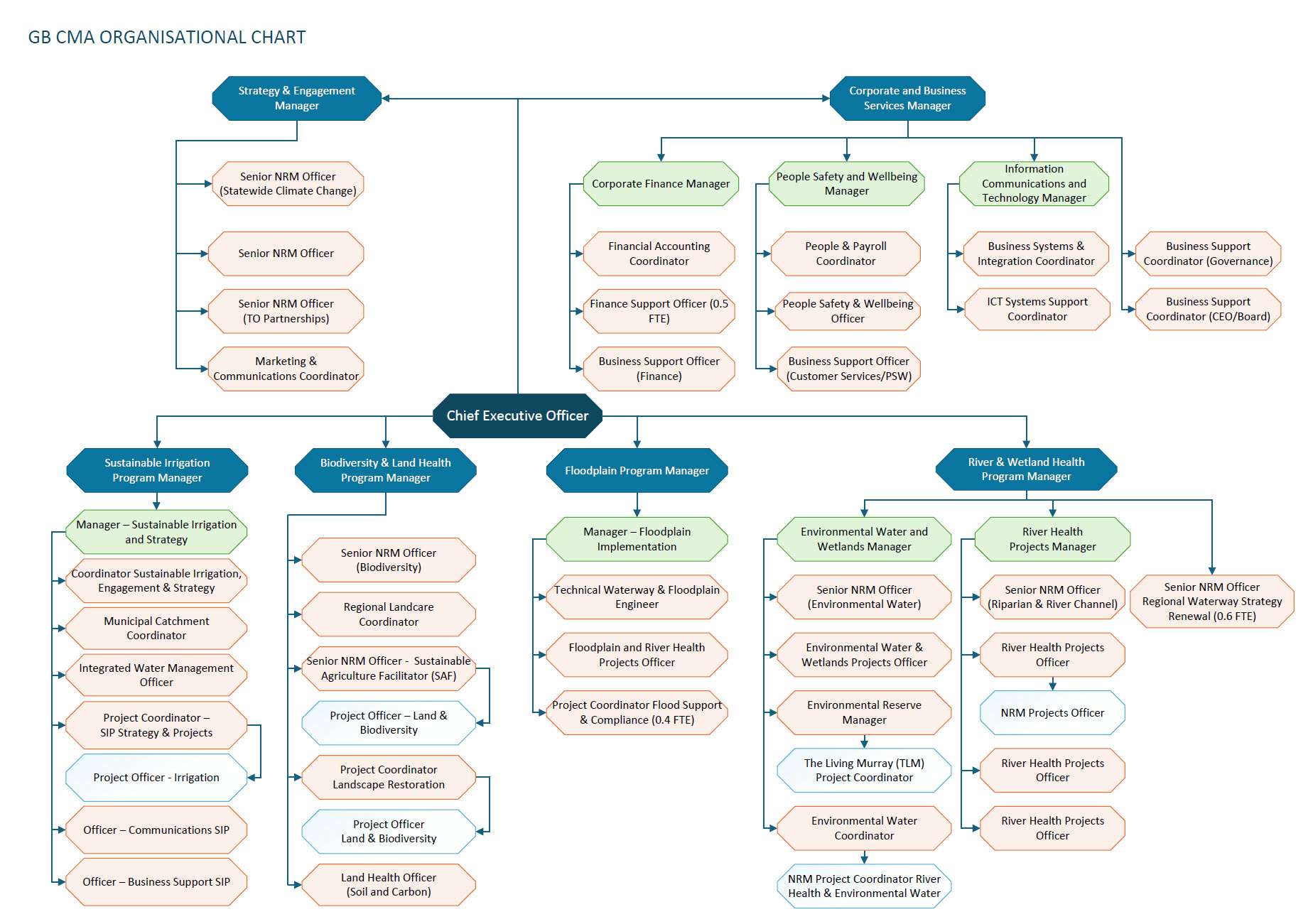 This page shows the current organisational structure of the GBCMA.